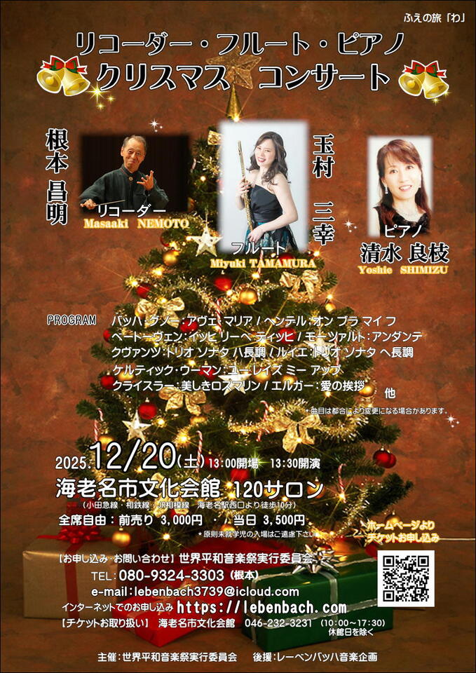 - 2025リコーダー・フルート・ピアノ クリスマスコンサート (3,000円) 購入/問合せ